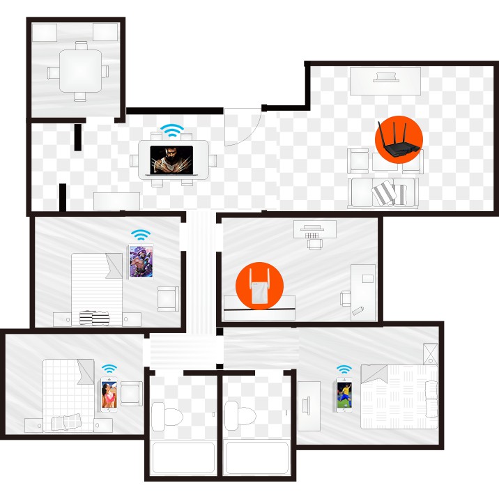 A18 là bộ lặp WiFi băng tần kép AC1200 được thiết kế cho nhà nhiều tầng, biệt thự và nhà nhiều phòng có diện tích vượt quá 120 mét vuông. Nó cung cấp tốc độ lên đến 300 Mbps trên băng tần 11n và tốc độ 867 Mbps trên băng tần 11ac. Với hai ăng-ten đa hướng bên ngoài, A18 có thể cung cấp phạm vi phủ sóng WiFi lớn hơn, cũng như tốc độ dữ liệu cực nhanh, đáp ứng các ứng dụng như phát lại video HD 1080P, trò chơi trực tuyến nhiều người chơi và tải xuống tốc độ cao. . Với Trình hướng dẫn thiết lập nâng cấp, bạn có thể thiết lập bộ mở rộng của mình chỉ trong ba bước, rất dễ sử dụng. A18 cũng hoạt động tốt nhất với các bộ định tuyến WiFi của các thương hiệu khác hiện có trên thị trường. Để có toàn bộ vùng phủ sóng WiFi,