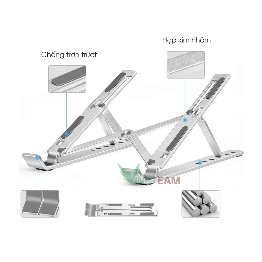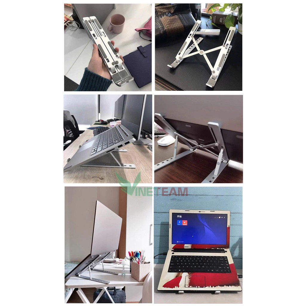 - Giá đỡ laptop MacBook, Ipad, máy tính bảng, Surface... bằng hợp kim nhôm + có thể xếp gọn + điều chỉnh độ cao.
