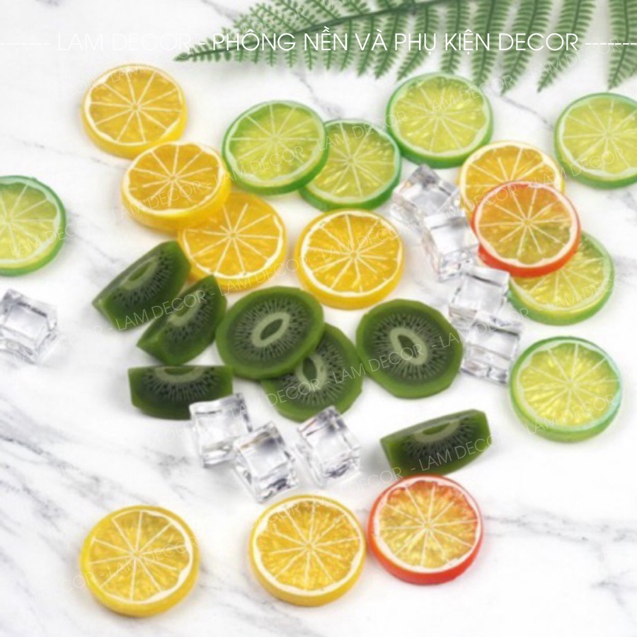 Lát hoa quả trang trí1 set 3 quả: chanh xanh, chanh vàng và cam (hết kiwi)