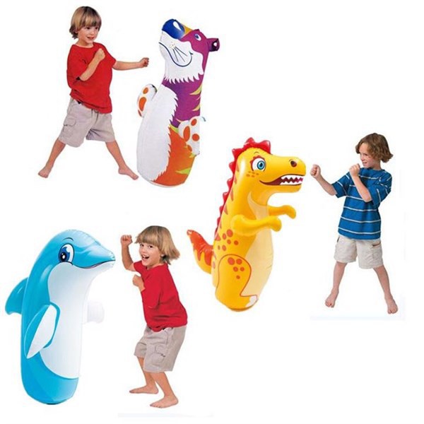 Đồ chơi lật đật bơm hơi có nhiều mẫu ngộ nghĩnh phù hợp với cả bé trai, bé gái và tính cách từng bé: chú cá heo dolphin dễ thương màu xanh đại dương tươi mát, khủng long tinh nghịch màu vàng da cam, cùng chú hổ đáng yêu, có thể đứng dậy khi ngã, tạo cảm giác thích thú cho bé vui chơi mà bé không chán. Lật đật như một người bạn chơi cùng bé, dạy bé biết tự đứng dậy khi ngã. Sản phẩm chính hãng INTEX được làm từ chất liệu nhựa PVC bền đẹp, không phai và an toàn cho bé, màu sắc sinh động, không gây kích ứng da. Kích thước sản phẩm: 98 x 44 cm Dành cho trẻ từ 3 tuổi trở lên.