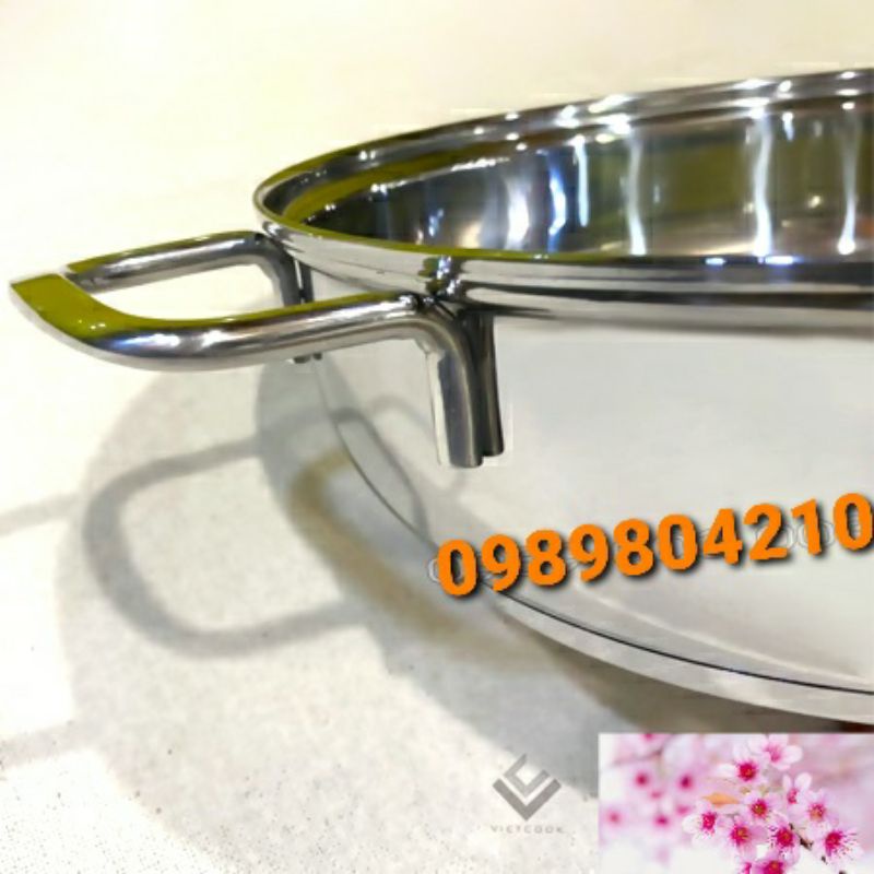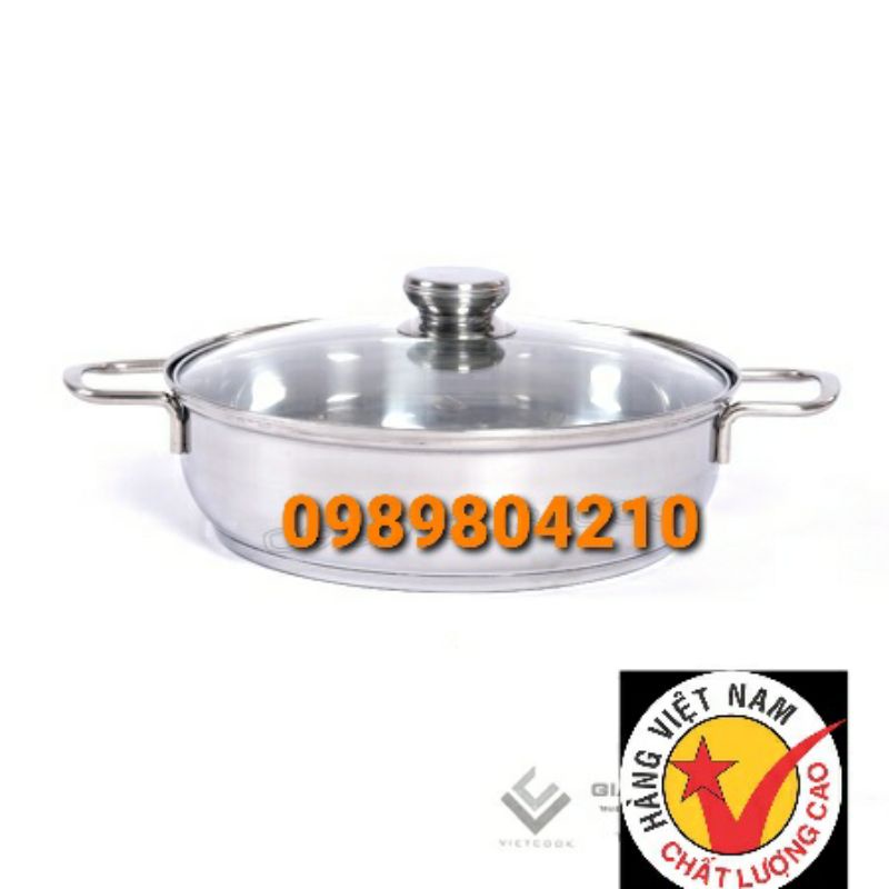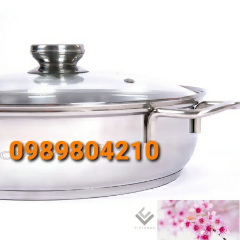 Lẩu 3 đáy nắp kính vietcook size 26cm, 28cm,30 cm ,nồi lẩu nắp kính , lẩu đun bếp từ hàng 3 đáy dày dặn Chính Hãng