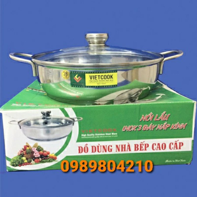 Nhà cửa & Đời sống > Dụng cụ nhà bếp > Nồi || Lẩu 3 đáy nắp kính vietcook size 26cm, 28cm,30 cm ,nồi lẩu nắp kính , lẩu đun bếp từ hàng 3 đáy dày dặn Chính HãngCòn hàng