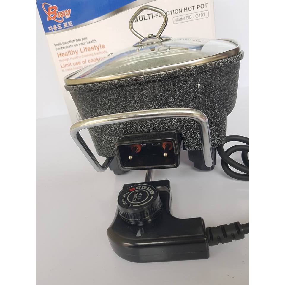 LẨU ĐIỆN VÂN ĐÁ BOSCO BC - G101 (THỂ TÍCH 2L)lẩu điện nhỏ bé xinh xinh rất tiện lợi,Sản phẩm hỗ trợ đắc lực cho gia đình bạn với 5 chức năng như: Nấu lẩu, chiên, xào, nướng và rán mà không cần nhiều dầu mỡ. Bạn không cần bỏ ra nhiều tiền mua nhiều sản phẩm riêng biệt, với sản phẩm này tất cả chỉ còn đang chờ bạn mua nguyên liệu thịt cá, rau, củ quả về chế biến