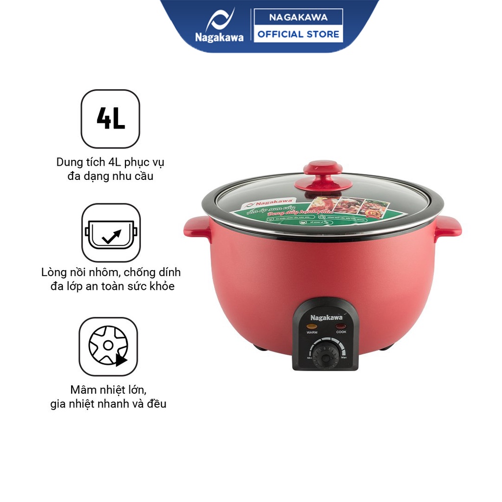 - Lẩu điện Nagakawa NAG1902 có thiết kế trang nhã, đơn giản. Nồi lẩu điện có dung tích lên 4 lít chứa được nhiều thức ăn, điều chỉnh dạng gạt dễ thao tác.