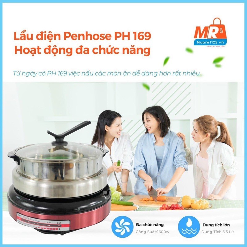 Nồi lẩu điện Penhose PH-169 có thể sử dụng vào nhiều mục đích khác nhau ngoài nấu lẩu như chiên, xào thức ăn, sử dụng để hấp, nướng,… rất dễ dàng với khay bằng inox 304 tráng men chống dính siêu bền, chịu được nhiệt độ cao