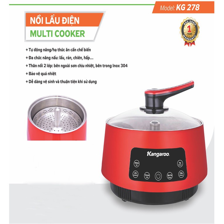 [Mã ELHADEV giảm 4% đơn 300K] Lẩu điện thang máy Kangaroo 5L KG278 bảo hành 12 tháng