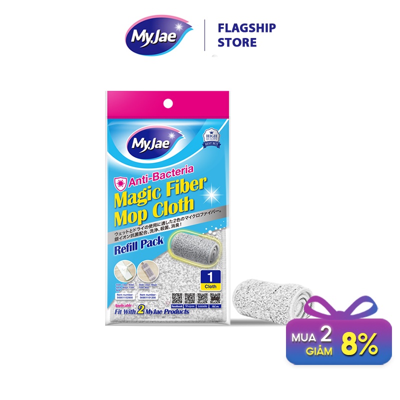 Thương hiệu: MyJaeTên sản phẩm: Bông lau kháng khuẩn cho cây lau nhà sợi fbier tự vắt phẳng và cây lau nhà tự vắt phun sương MyJae Đài Loan