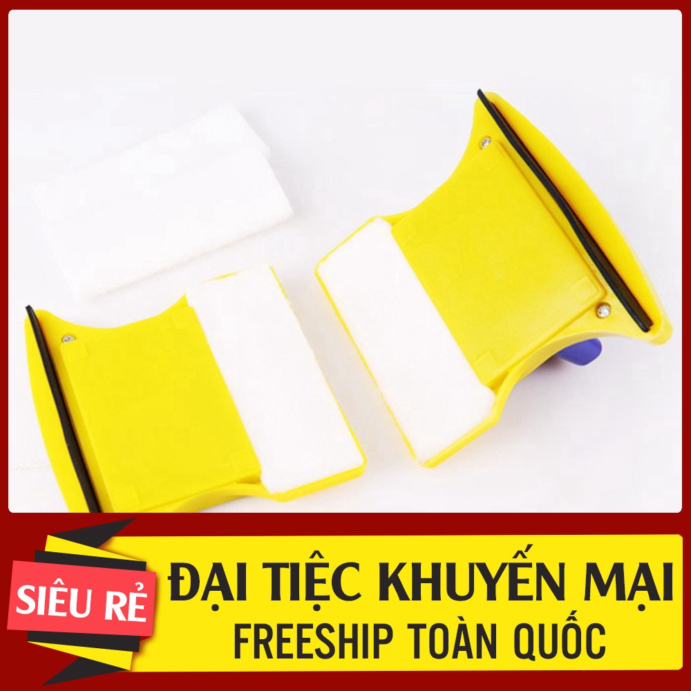 ĐẶC ĐIỂM NỔI BẬT✯ Dụng cụ lau cửa kính 2 mặt tiện dụng với thiết kế độc đáo bao gồm 2 miếng lau kính có thể dính lại với nhau bằng nam châm sẽ giúp bạn vệ sinh các loại cửa kính một cách nhanh chóng.
