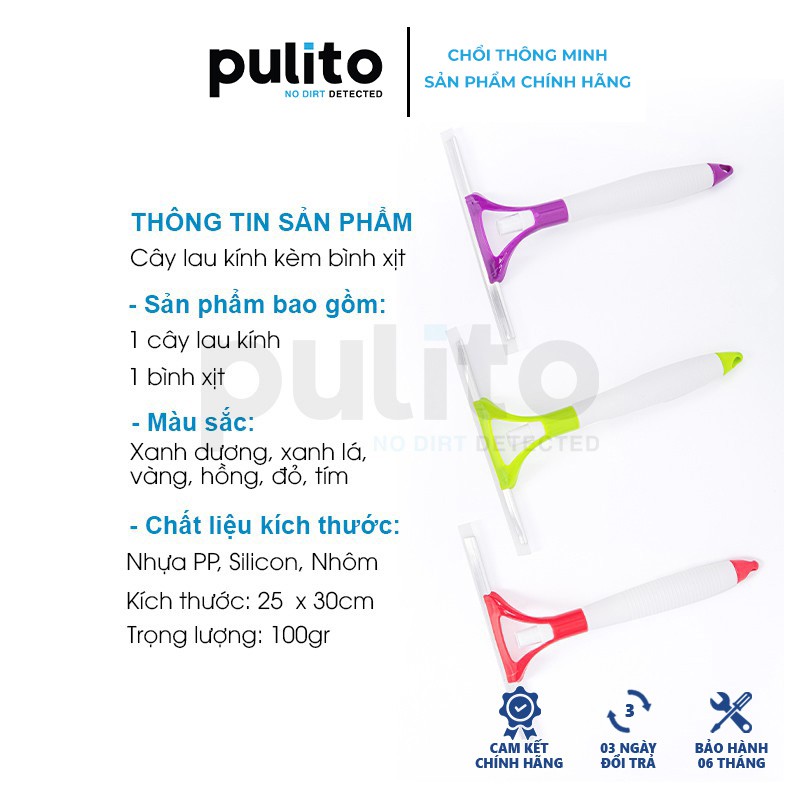 - Cây lau kính cầm tay kèm bình xịt - cây lau kiếng mini tiện lợi thiết kế nhỏ gọn, nhẹ nhàng, dễ di chuyển giúp công việc lau chùi kính trở nên tiện lợi và dễ dàng hơn, bảo vệ da tay của bạn.