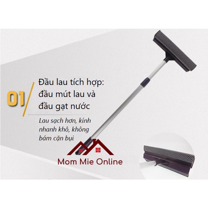 - Đầu lau mềm, dẻo, bám sát vào kính, thiết kế đặc biệt với lớp mút mềm, tiện ma sát và dễ dàng lấy đi những chất bẩn cứng đầu nhất trên mặt kính mà không làm trầy xước mặt kính.