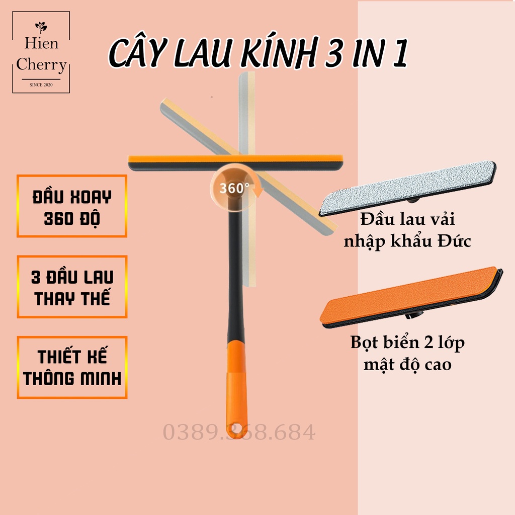 Cây lau kính cao cấp đầu xoay 360 độ, cây gạt kính thông minh 3 trong 1 đa năng, tiện lợi