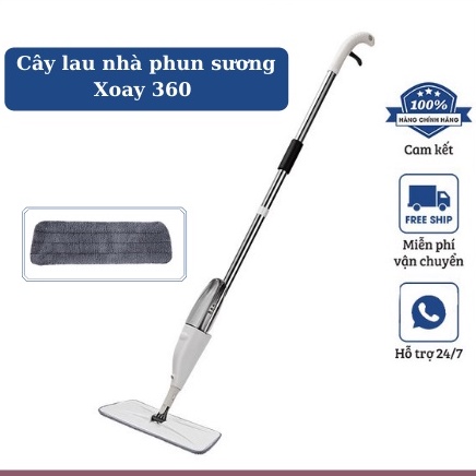 Cây Lau Nhà 360 Chổi Lau Nhà Thông Minh Phun Sương Có Video Thật☑️Việc lau nhà hàng ngày của chị em mình đôi khi rất vất vả với những vết dính bẩn cứng đầu, vết dầu mỡ ….mà các bông lau và nước lau sàn thông thường sẽ không thể nào lau sạch được. Nay với Chổi lau nhà thông minh phun sương thì các vết bẩn đó chỉ còn là việc nhỏ với bình phun thông minh được gắn trên thân cây lau nhà bạn chỉ cần nhẹ nhàng bóp cần gạt là nước trong bình sẽ phun ra một lượng nước, dung dịch thích hợp để đánh bay vết bẩn.