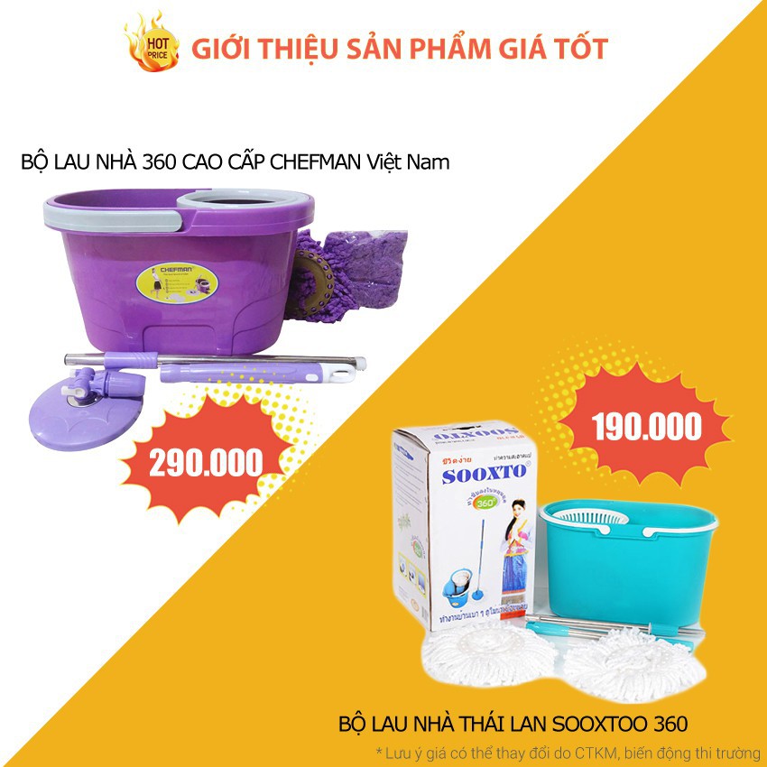 Cây lau nhà 360 độ Việt Nam là sự lựa chọn phù hợp của bạn khi cần thay thế cây lau nhà đã cũ hỏng của mình, còn chờ gì nữa hãy đến với Hà Thy Mart và mua đồ ngay thôi nào.