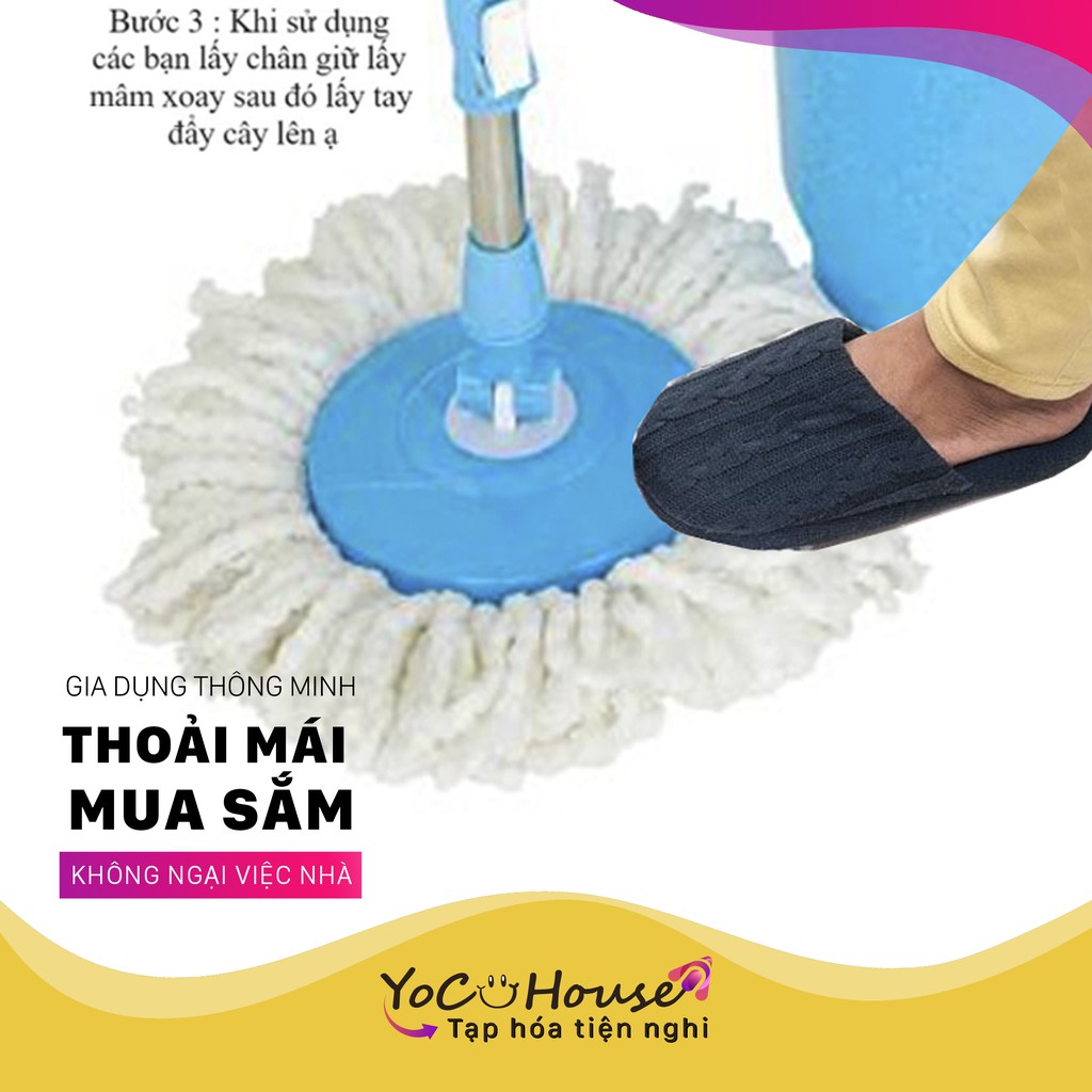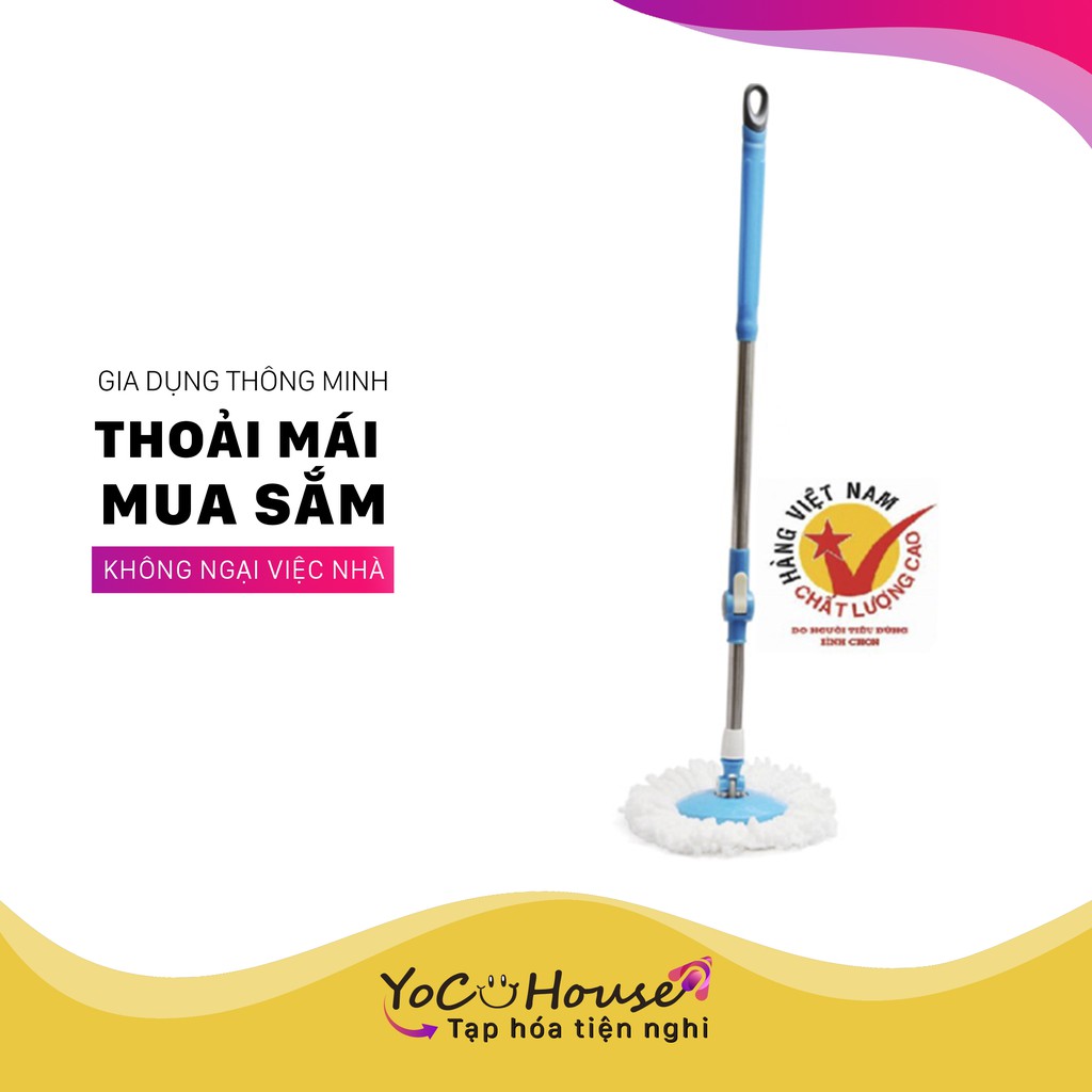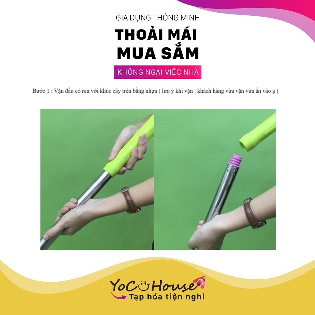 Cây lau nhà 360 độ inox 19 - 22mm nhiều màu (khóa lật - đã kèm bông lau) - YenjHouse