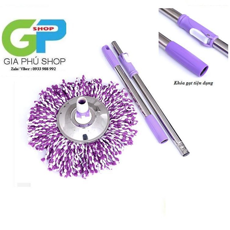 Cây lau nhà 360 độ inox lớn Gia Phú PP7 - mâm inox nhập khẩu 100% ( khóa lật - đã kèm bông lau )