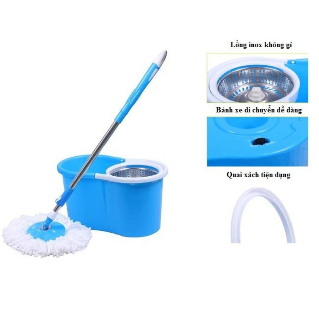 Bộ lau nhà 360 độ lồng inox Gia Phú HOGP179 ( có bánh xe - 1 bông lau )