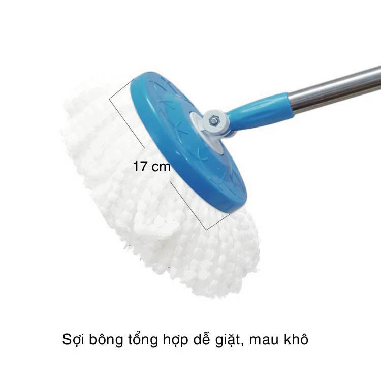 Thân cây lau nhà dài 118 cm bằng inox, chắc chắn và hạn chế oxy hóa trong quá trình sử dụngChất liệu Microfiber dễ giặt sạch, thấm hút nước tốt. Có thể xoay 360 độ để chạm đến mọi ngóc ngách, di chuyển nhẹ nhàng theo mọi hướng, giúp tiết kiệm thời gian và công sức lau dọn.