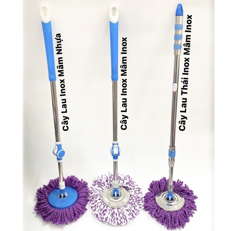 - Chất liệu sợi microfiber dày giúp thấm nước vượt trội và khô nhanh hơn, sạch hơn so với các loại bông lau thông thường khác. Đầu bông lau xoay tròn 360 độ giúp làm sạch mọi ngóc ngách.