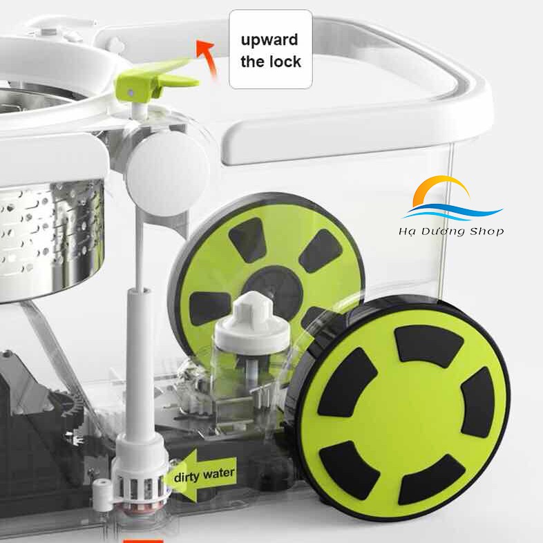 - Thùng đựng nước bộ lau nhà 360 độ Thái Lan được trang bị 2 bánh xe lớn dễ dàng di chuyển hơn.