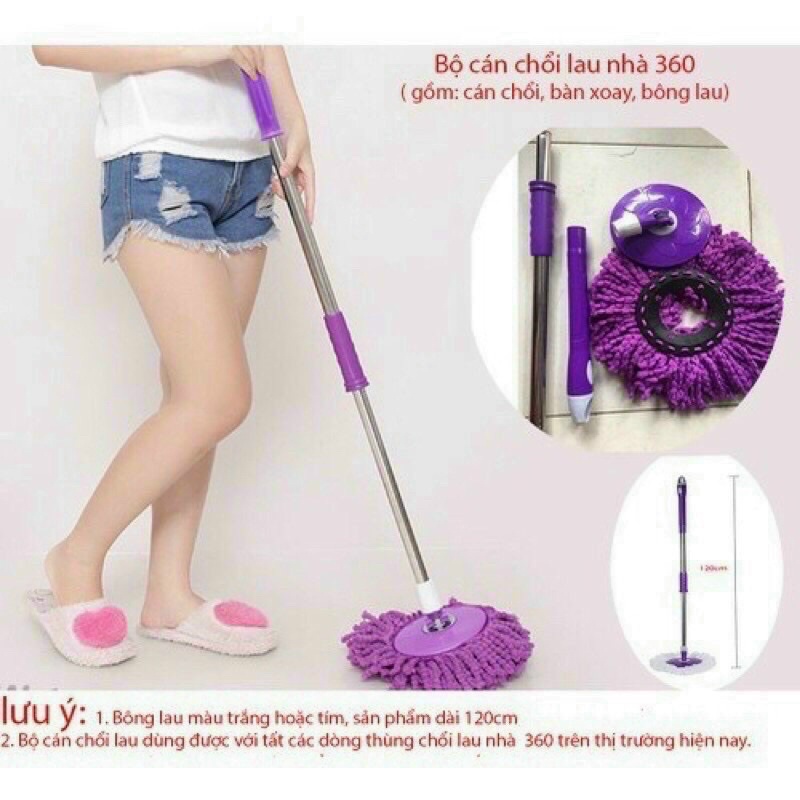 Chổi 360° lồng inox , 2 bông lau . Thùng chậu to dễ dàng khi lau chùi nhà cửa.