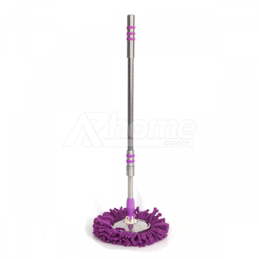 Bộ phụ kiện bao gồm 1 thân cán màu tím dài 120cm, 1 bàn xoay nhựa, và 1 bông lau màu trắng hoặc tím.