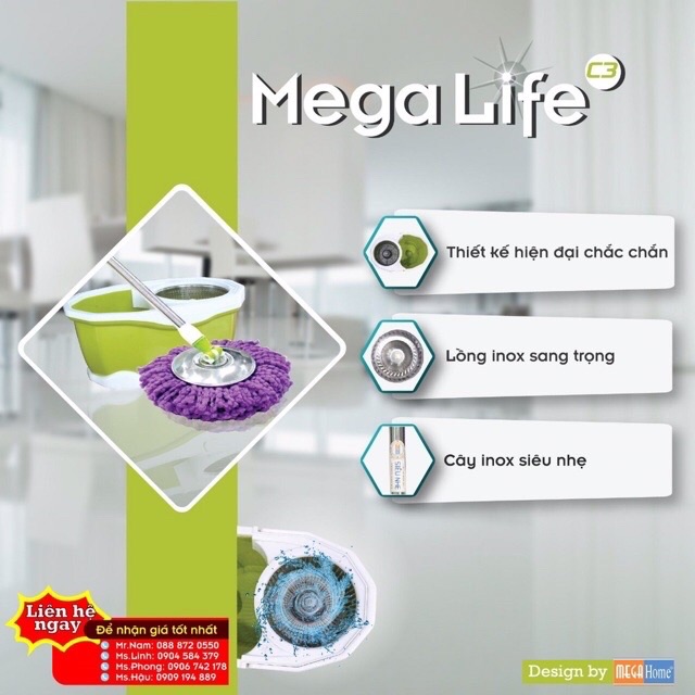 - Bộ lau nhà đa năng 360 độ với bánh xe megahome được bề ngoài sáng tạo sở hữu phổ biến thế mạnh nổi bật, giúp công việc vệ sinh nhà cửa nhanh chóng, nhẹ nhàng và đơn thuần hơn.