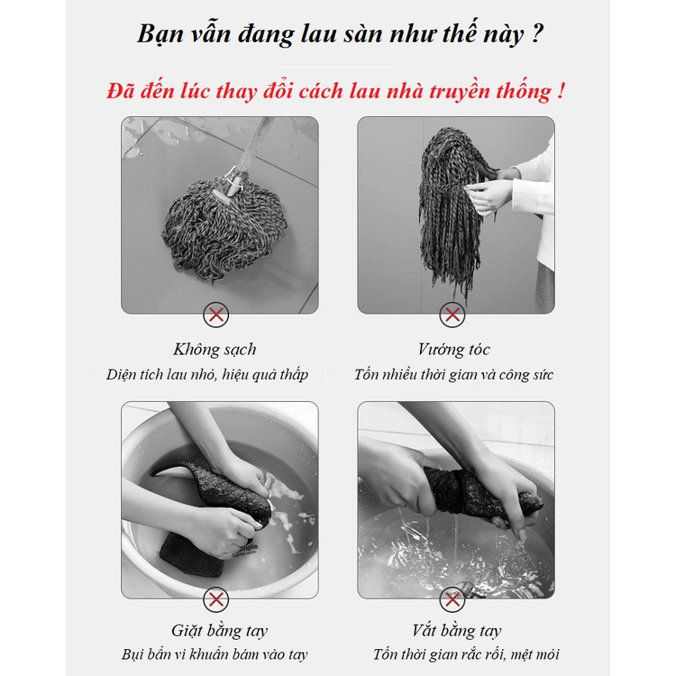 ✔️ Sản phẩm thế hệ mới xoay 360 độ thiết kế thông minh với đầu lau sàn hình chữ nhật.