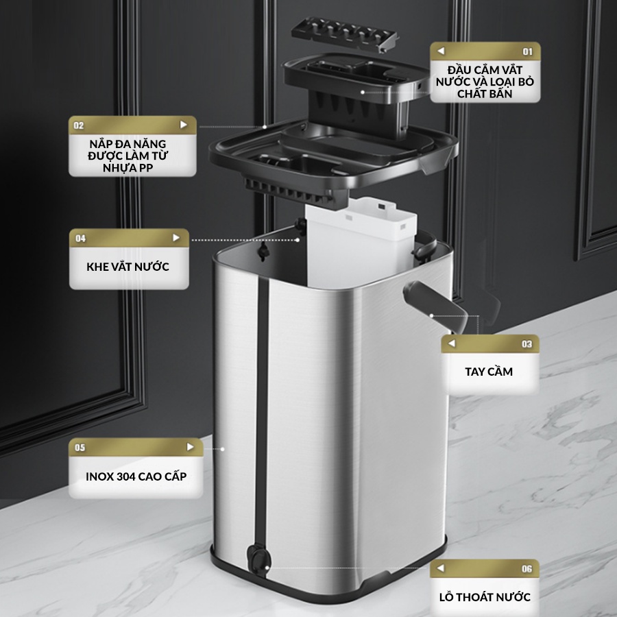- Quai xách cho thùng chổi lau nhà giúp bạn dễ dàng xách và di chuyển mọi nơi