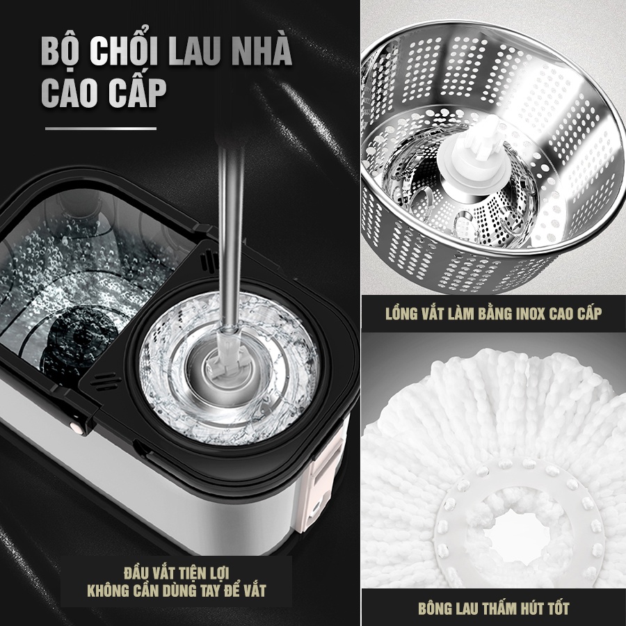 Cây lau nhà, bộ lau nhà thông minh tự vắt 100% INOX CAO CẤP (NHIỀU KIỂU DÁNG LỰA CHỌN)