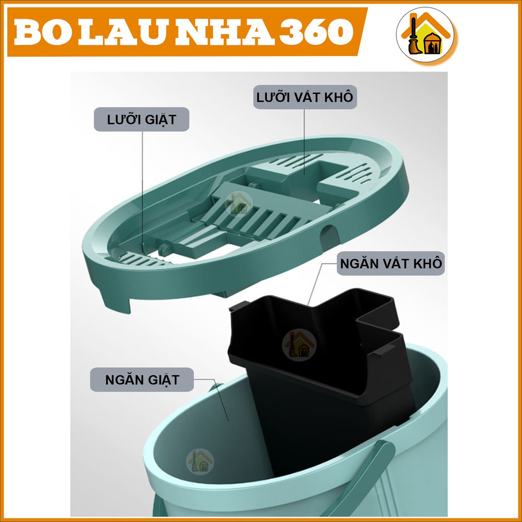 ● Cây lau nhà tự vắt xoay được 360 độ.