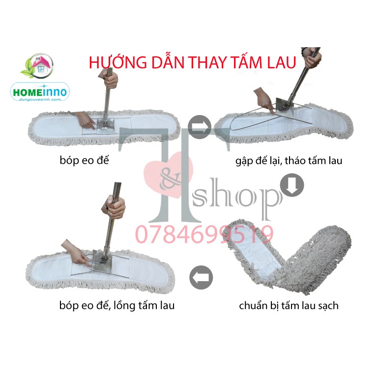 Giới thiệu Cây Lau Nhà CÁN THẲNG Sàn Bụi, Ẩm Giẻ Cotton Bản Lau 90cm Homeinno Dài 160cm