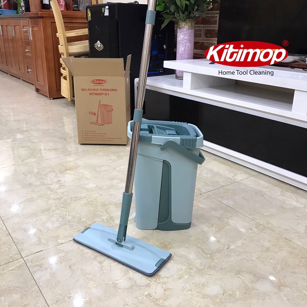 Bộ lau nhà thông minh Kitimop-S1 có thùng lau 2 ngăn tự vắt, chổi lau nhà 360 độ, 3 miếng lau