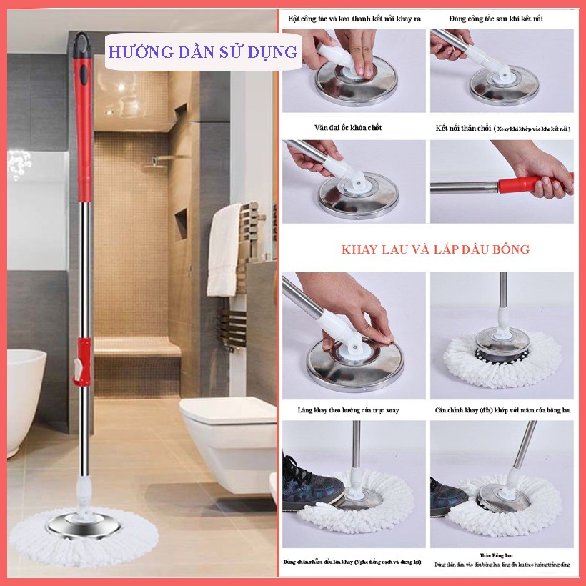 THÔNG TIN SẢN PHẨM:- Tên sản phẩm: Cây Lau Nhà Chính Hãng Cán Inox Mâm Nhựa Xoay 360 Cao Cấp