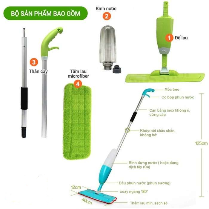 Cây lau nhà thông minh có bình phunCông việc dọn dẹp nhà cửa tốn quá nhiều thời gian và công sức đến nỗi bạn không thể nghỉ ngơi, thư giãn và lúc nào trông cũng mệt mỏi. Việc lau dọn nhà cửa khiến bạn phải tiếp xúc nhiều với hóa chất độc hại cho da tay . Cây lau nhà có bình phun thông minh, với thiết kế thông minh với đầu lau sàn hình chữ nhật tạo nên lực ly tâm lớn, giúp nhẹ nhàng lau sạch mọi bụi bẩn trên sàn nhà hay mọi ngõ ngách, góc hẹp trong ngôi nhà bạn một cách nhanh chóng và sạch sẽ.