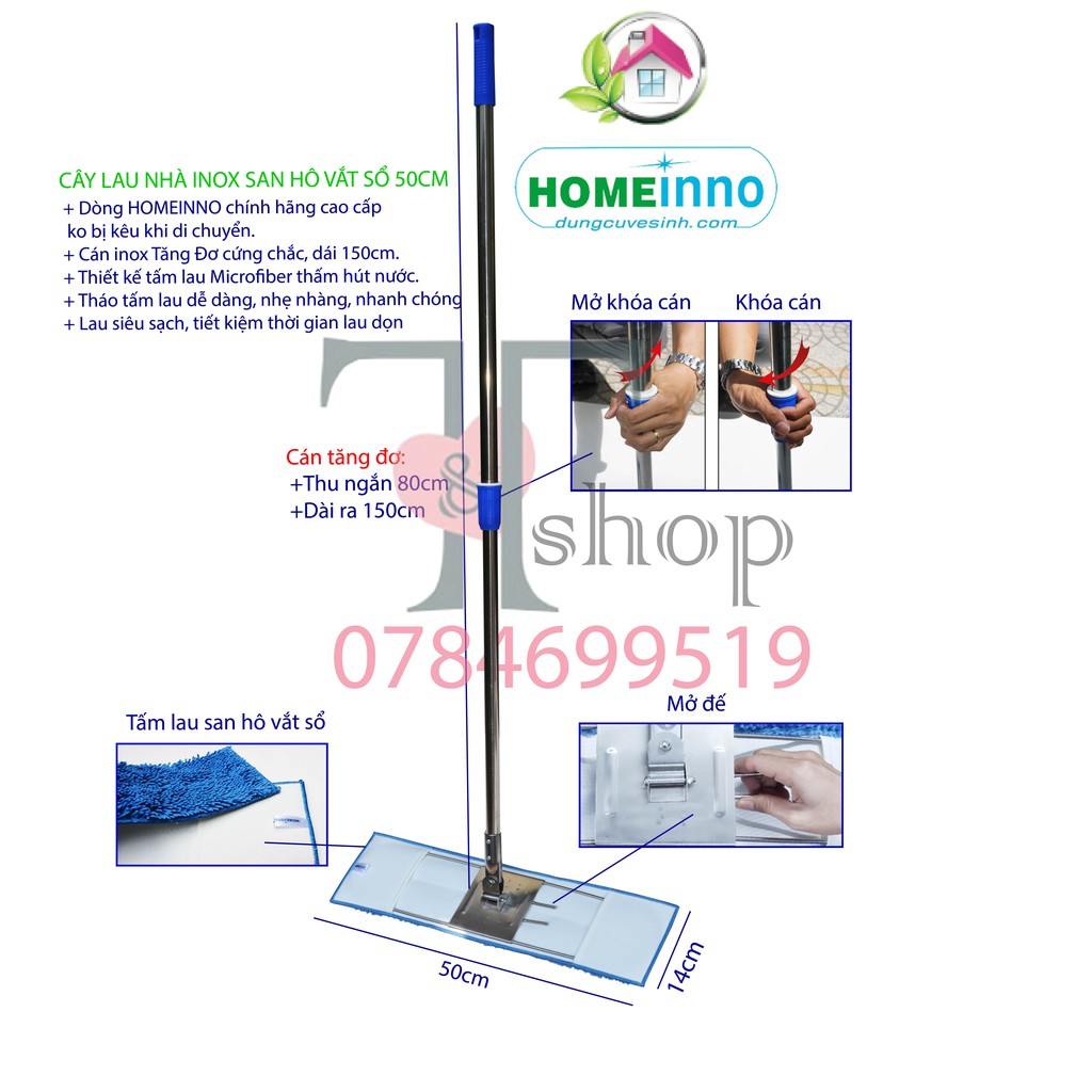 Nhà cửa & Đời sống > Dụng cụ chăm sóc nhà cửa > Cây lau nhà || Cây Lau Nhà Công Nghiệp Bản Lau 50cm Homeinno Tấm Microfiber San HôCòn hàng