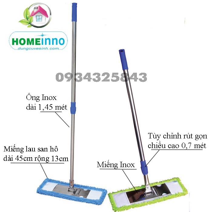 Nhà cửa & Đời sống > Dụng cụ chăm sóc nhà cửa > Cây lau nhà || Cây lau nhà công nghiệp Inox HomeInno 1,45 mét - có tăng đơ điều chỉnh độ caoCòn hàng
