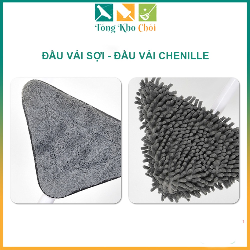 - Đầu lau có 2 phần: một phần bằng vải để lau sáng bóng và một phần có dây lau để lau sạch hoàn toàn. Cây lau trần nhà quét mạng nhện là đồ dùng không thể thiếu của mọi gia đình