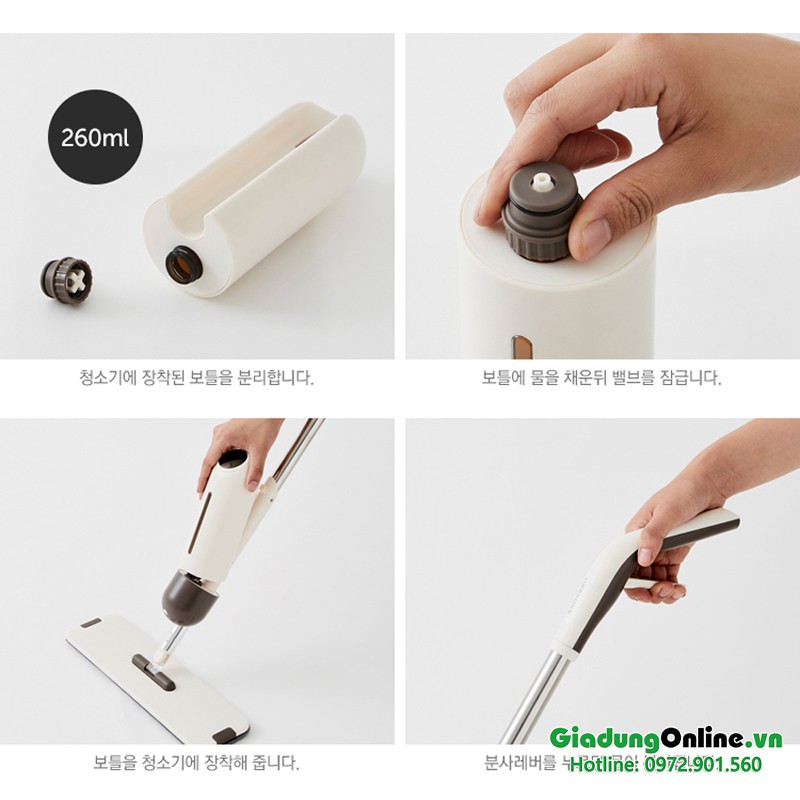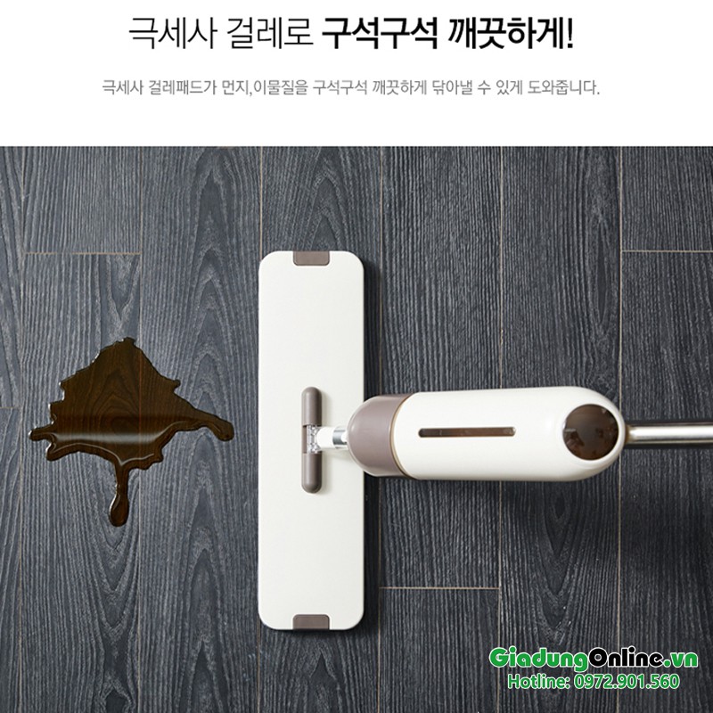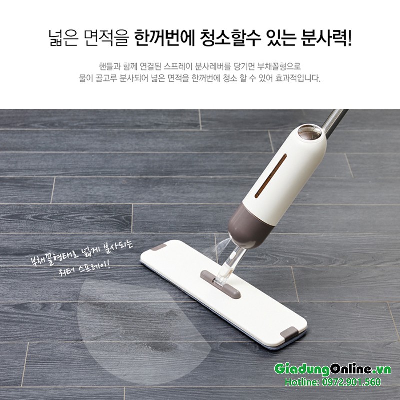 - Chuôi cầm được thiết kế cần gạt cho bạn thuận tiện thao tác khi cần phun nước, chỉ cần bóp nhẹ là nước sẽ được phun ra dưới một tốc độ cực mạnh dưới dạng sương với góc phun rộng, giúp bạn dễ dàng lau dọn và làm sạch cả những mặt sàn rộng một cách tiện lợi và nhanh chóng mà không làm xước bề mặt sàn, không để lại lông sợi trên sàn.