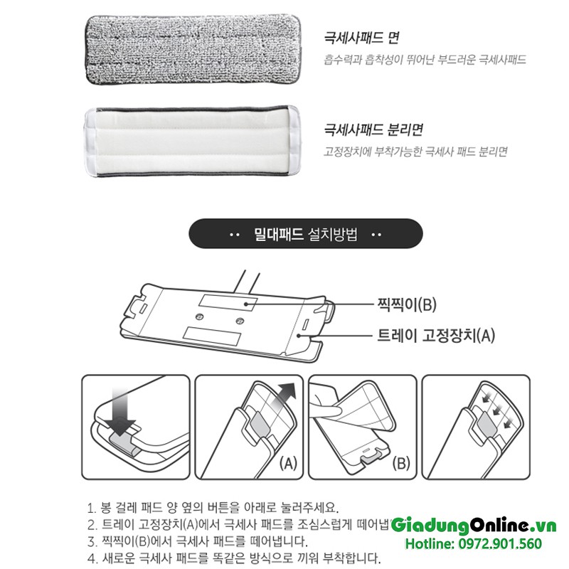 - Chất liệu: Nhựa, thép không gỉ, bông lau Microfiber