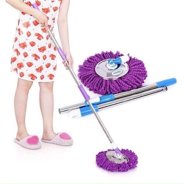 Cây lau nhà bàn xoay Nhựa : mang lại sự thoải mái và không lo mỏi tay, đau lưng. Với tiêu chí miễn đạp - miễn vắt - miễn cắm điện - miễn chờ đợi - không quỳ gối. Bộ lau nhà cho chị em có thêm thời gian để tận hưởng cuộc sống. Bộ cán chổi lau nhà xoay tay thông minh chỉ xoay tay và không cần đạp chân là có thể khô nước. Cây lau được làm bằng thép mạ inox với độ bền cao, chống ăn mòn và không bị hoen gỉ sau một thời gian sử dụng. Bên cạnh đó, cây lau còn có thể điều chỉnh được độ dài, phần đầu có khả năng xoay 360 độ, giúp làm sạch cả những góc khuất khó lau dọn như gầm giường, gầm tủ, bàn, ghế… Phần thân cây lau nhà có thể tháo lắp, điều chỉnh cho phù hợp. Phần bông lau có sợi dài được làm bằng bông microfiber, không xơ cứng nên không làm trầy xước bề mặt được lau. Sợi microfiber với khả năng thấm nước gấp 7 lần và khô nhanh gấp 3 lần so với các khăn lau thông thường khác giúp lau nhanh, sạch mọi ngóc ngách, ngay cả những nơi khó tiếp cận trong nhà. Phần đầu cây lau được nối với thân cho phép sản phẩm có thể chuyển động xoay 360 độ. Cây lau nhà bàn xoay Nhựa