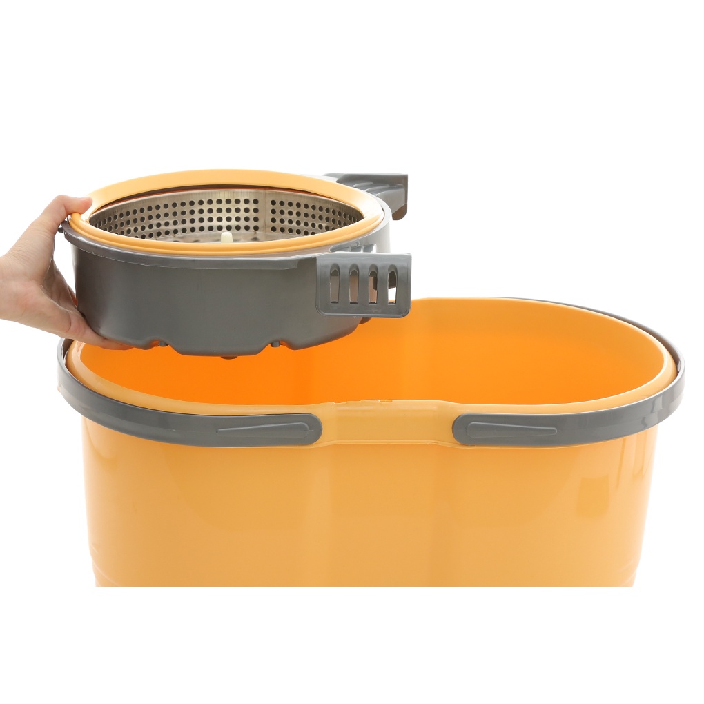 Lồng xoay làm bằng inox bóng sáng, hạn chế rỉ sét và tăng tính thẩm mỹ cho bộ lau nhà.