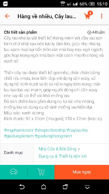 Nhà cửa & Đời sống > Dụng cụ chăm sóc nhà cửa > Cây lau nhà || Cây lau nhà gạt nước thông minh 360oCòn hàng
