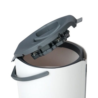 - Thùng giặt làm từ chất liệu nhựa cao cấp, vỏ ngoài có độ nhám màu trắng, nắp bên trên màu xám đậm đã tạo nên sự hài hoà ấn tượng khi kết hợp hai màu này với nhau.