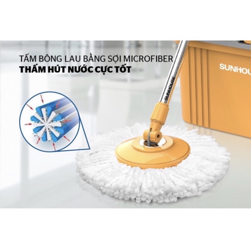 Đầu bông lau xoay tròn 360 độ linh hoạt giúp lau sạch mọi ngóc ngách.