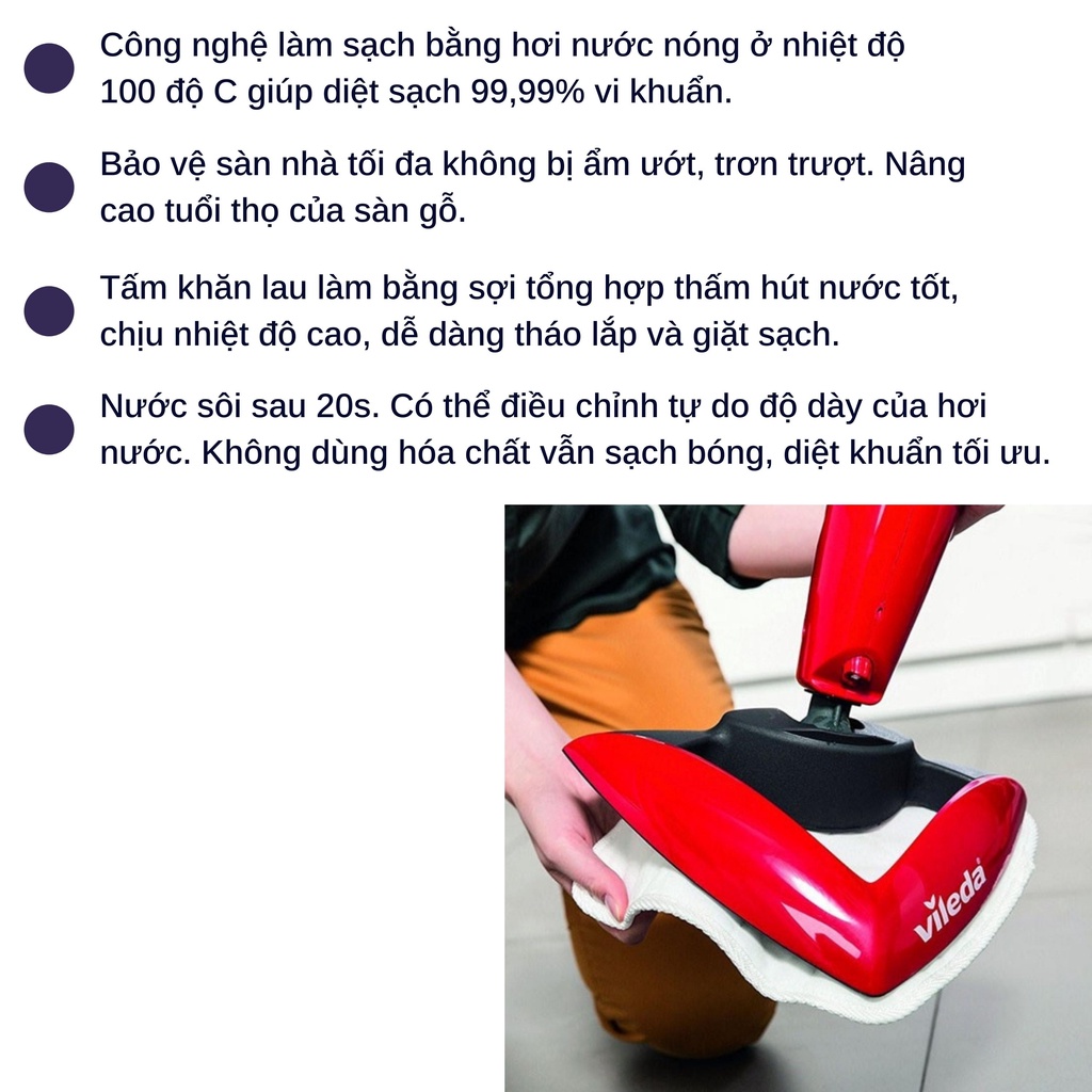 Cây lau nhà hơi nước khử khuẩn VILEDA bản tam giác [Hàng Đức Chính hãng]THÔNG TIN CHI TIẾT