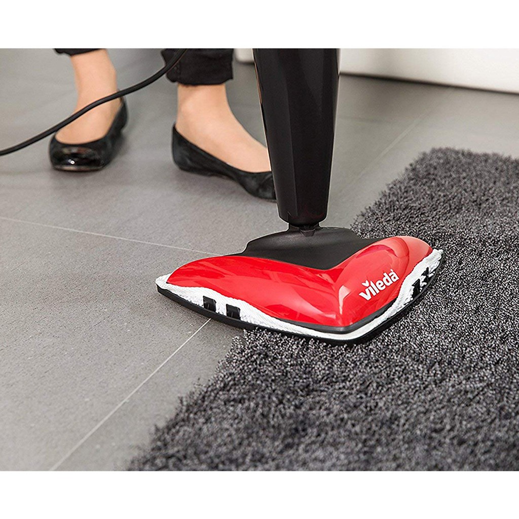 - Đặc biệt cây lau nhà hơi nước vileda có thể sử dụng trên tất cả các loại chất liệu sàn: từ sàn gạch, đá đến sàn gỗ, và cả thảm. Bạn có thể điều chỉnh tự do liều lượng của hơi nước, với sàn gạch và đá hơi nước mạnh hơn là sàn gỗ.