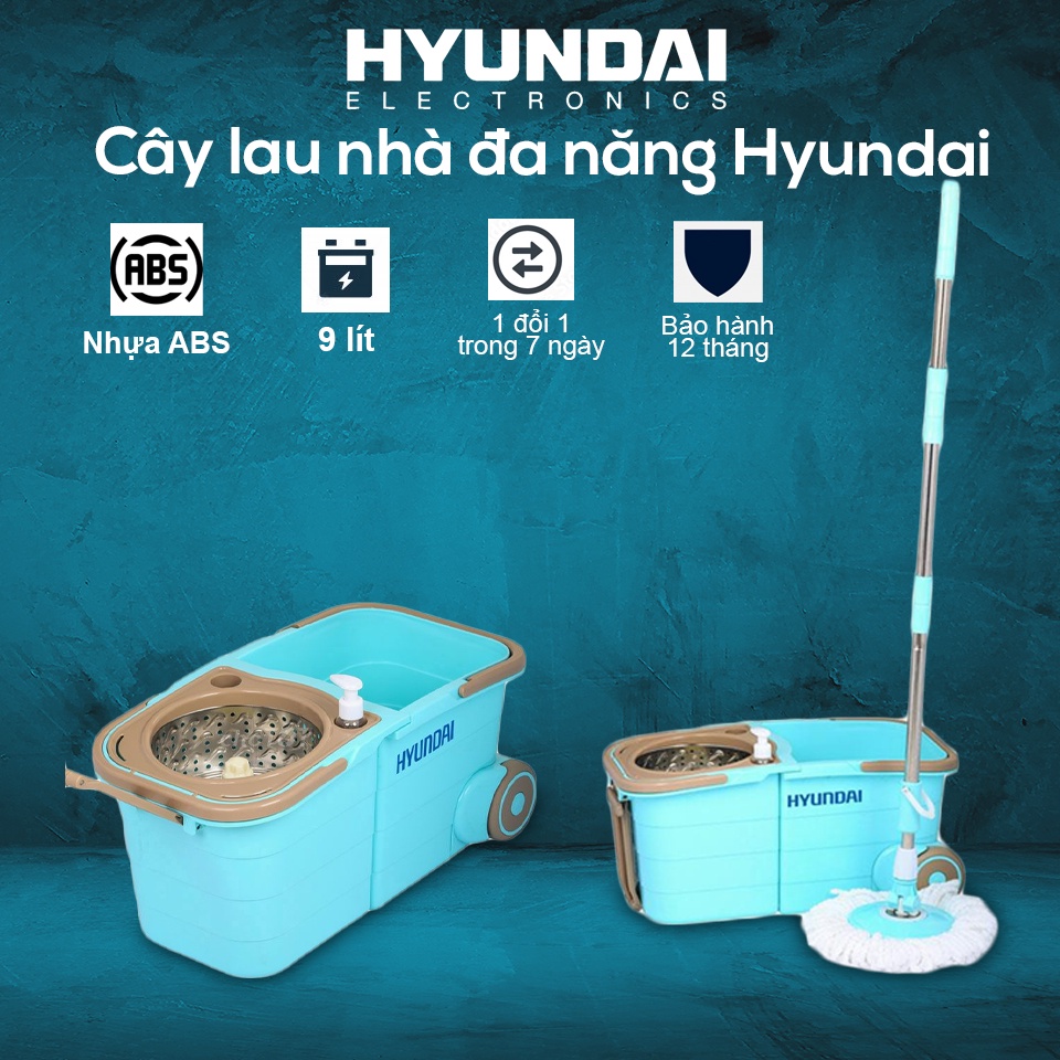 Bộ lau nhà là vật dụng cần thiết cho mỗi gia đình. Sản phẩm Bộ lau nhà xoay 360 độ Hyundai thế hệ mới bao gồm một thùng giặt có chứa lồng vắt , 1 cây lau. Với điểm nhấn là bộ bàn xoay cây lau với cơ cấu quay linh hoạt 360 độ khi lau, bộ lau nhà sẽ giúp bạn dễ dàng lau sạch bụi bẩn trong mọi ngóc ngách và cả những nơi khó lau dọn như gầm giường, gầm bàn, tủ, ghế… giữ cho ngôi nhà của bạn luôn sạch sẽ và thoáng mát.Đặc Điểm Sản Phẩm :