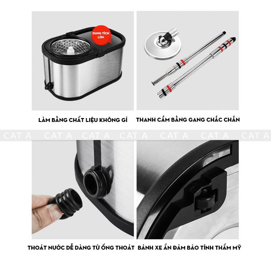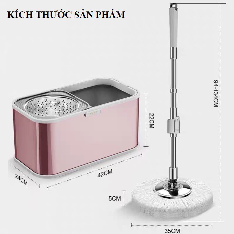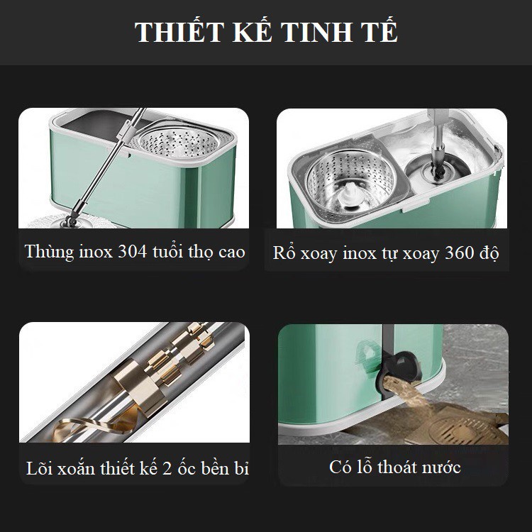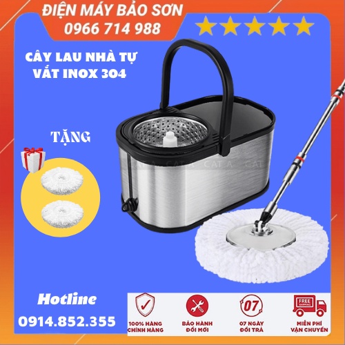 Cây Lau Nhà Inox 304 Tự Vắt 360 Độ Thế Hệ Mới - Chổi Lau Nhà Cao Cấp Hàng Chính Hãng Tặng Kèm 2 Bông Lau