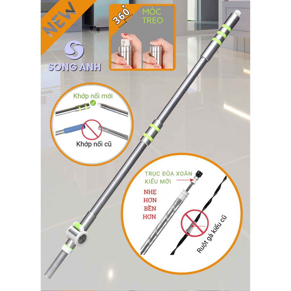 Giới thiệu Cây Lau Nhà Inox Thông Minh, Cán Chổi Siêu Nhẹ Xoay 360 Độ Song Anh