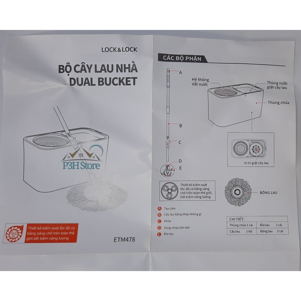 Nhà cửa & Đời sống > Dụng cụ chăm sóc nhà cửa > Cây lau nhà || Bộ lau nhà lớn Lock&Lock Dual Bucket Spin Mop ETM478Còn hàng